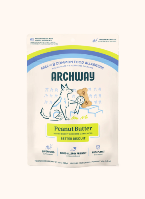 Hi! We’re Arch. We want to take the guesswork out of buying food or treats for your pet, so make them good for your dog and good for the planet. No weird by-products or fillers here. We leverage novel proteins that are highly nutritious and sustainable. Did we mention they’re also free of 8 common food allergens for pups?