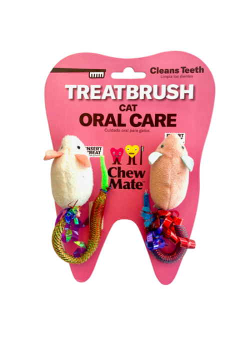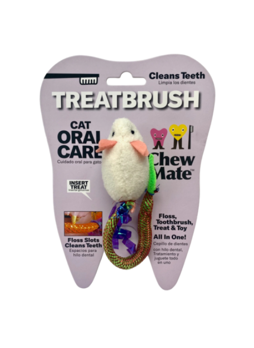 Our story is one of hygienist and dentist dog owners who had so much trouble trying to brush their own dog's teeth that they invented the CHEWMATE TreatBrush - the Self-Brushing Toothbrush Oral Care Toy that triple cleans your dog's teeth, gums and tongue as they chew and play. Simply insert your dog's favorite treat and TreatBrush turns ANY treat into a Toothbrush.