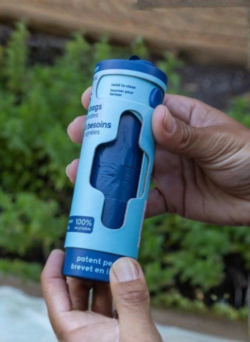Meet the dispenser you never have to refill. Our disposable 3-pack features our patented dispenser, pre-loaded with high-quality, 65% recycled bags and easy-tie handles for quick, clean pickups.