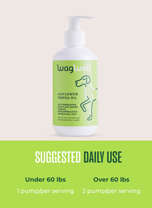 - We recommend a daily suggested dose of 1 pump (1.2 mL) per serving for dogs under 60 pounds, and 2 pumps (2.4 mL) per serving for dogs over 60 pounds.