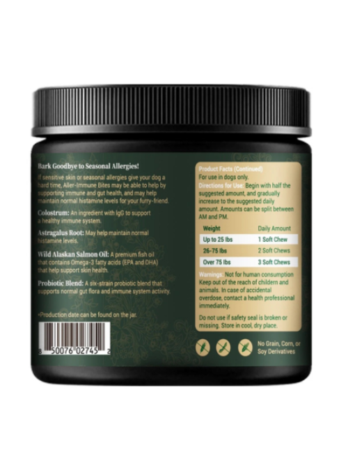 - These dog allergy relief chews promote immune system balance, digestive health, and shiny coat support