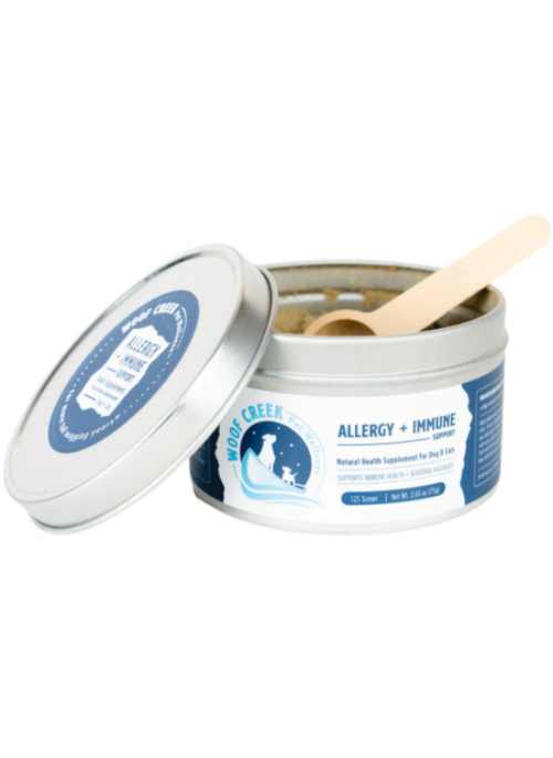 Maintain your pet's vital immune response with the Allergy + Immune Support supplement from Woof Creek. With selectively sourced only-active ingredients of superfoods, functional mushrooms (fruiting body) and novel proteins, this powder blend enhances healthy organ function, immune and detoxification processes to achieve whole body homeostasis, while its aromatic, flavorful, and fully bioavailable formula makes it easy and enjoyable for dogs and cats to get the support they need.
