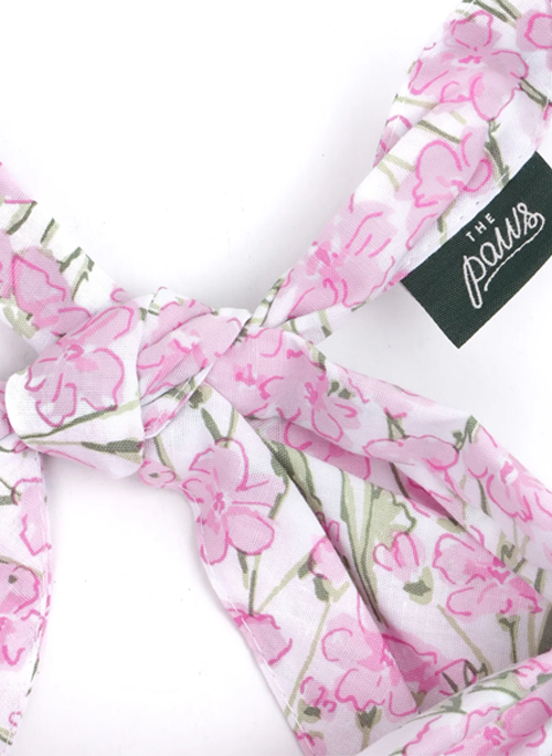 Azelia Dog Bandana - Soft Pink Flowers on White Cotton