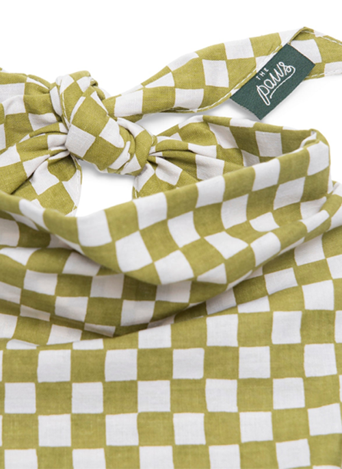Baby Checkmate Dog Bandana - Guacamole Little Checks on Off White Colored Cotton