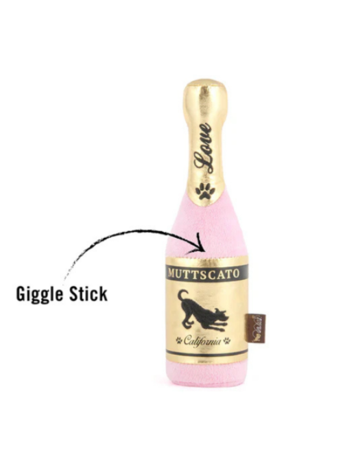 Meet the paw-fect blend of fun and fizz for your furry friend with P.L.A.Y.’s Puppy Love Barking Bubbly toy! This champagne bottle-inspired dog toy creates a delightful experience for your pup by featuring a fun giggle stick inside. Watch as they playfully engage with this bubbly bottle and cheers to interactive fun with the canine-approved muttscato!