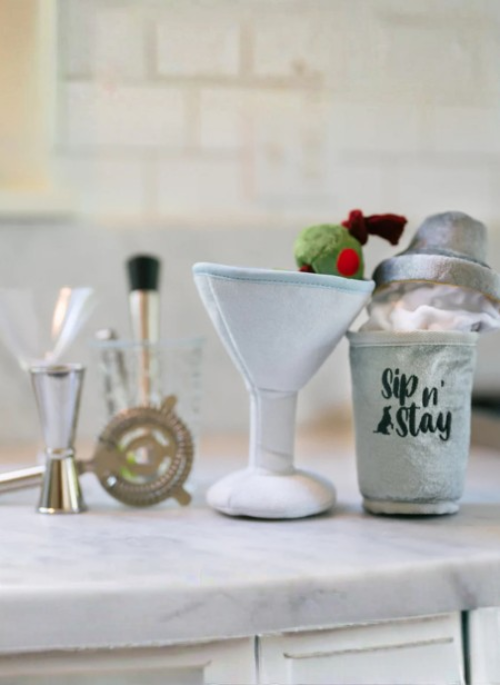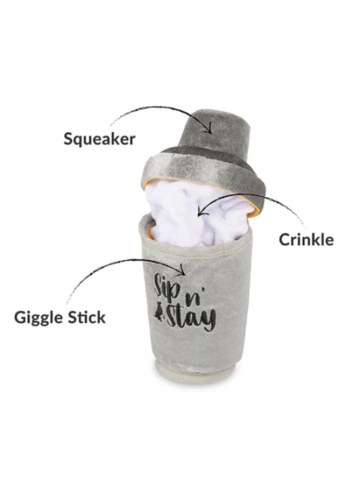 Mix up the fun with P.L.A.Y.’s Barktender Dogtail Shaker – the perfect playtime concoction for your pup! This martini shaker-inspired toy is crafted for endless amusement, featuring a giggle stick, squeaker and crinkles. Let the playtime pour in with the Dogtail Shaker – where every shake brings endless fun!