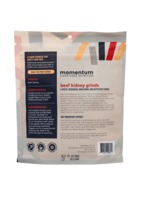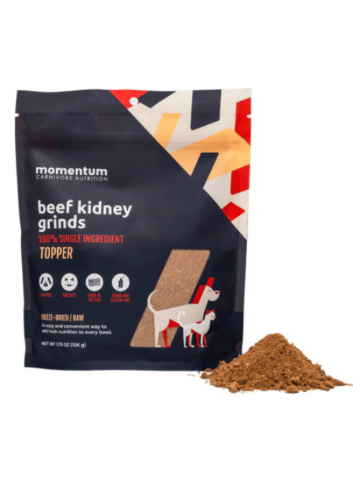 Enhance your pet’s meals with the Momentum Carnivore Nutrition Freeze-Dried Beef Kidney Topper. Made from 100% natural beef kidney, this nutrient-packed topper delivers a powerful boost of protein, vitamins, and flavor that dogs and cats crave.