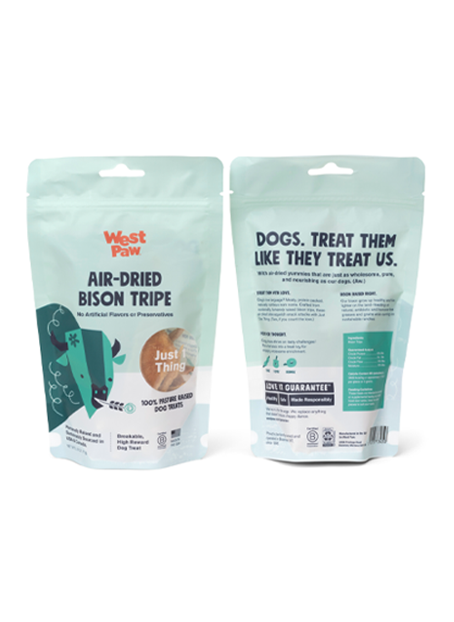 Crafted from sustainably, humanely raised Bison Tripe, these stinky, air-dried bites squelch snack attacks and are a great source for protein, B vitamins, and omega-3 fatty acids. These pasture-raised, majestic beasts are sustainably sourced in the US and Canada, and are raised free from antibiotics or hormones.