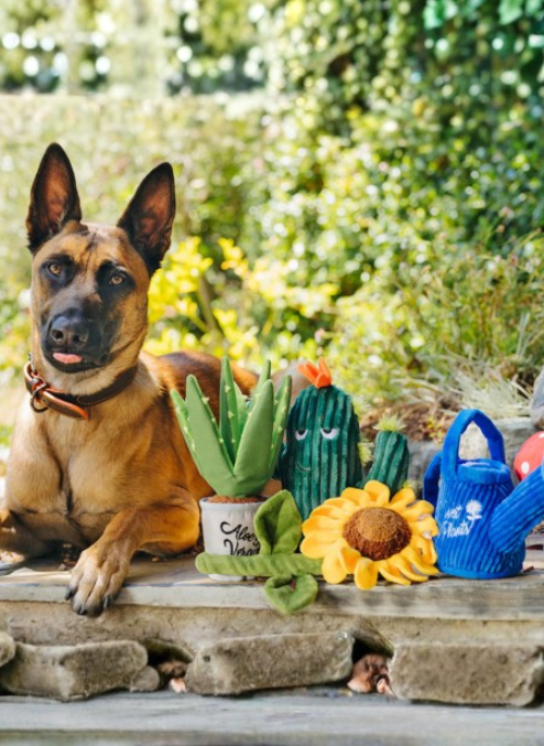 Say aloe to your dog’s new friends – P.L.A.Y.’s Blooming Buddies Plush Dog Toy Collection! Finally, a garden that will thrive and provide bountiful fun all year-round! A day in the leaf of your furry gardeners will include tending to their prickly cactus, bright sunflower, magical mushroom, and succulent aloe vera plant, all with the help of their handy dandy watering can. By the end of playtime, your pup is sure to develop a green paw, and the squeaky cactus dog chew toy and crinkly mushroom toy will keep them grinning from ear to ear!