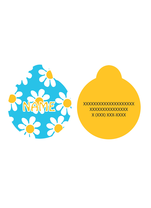 Spring is in the air, and it can be all year round with the Blue Daisy Custom Pet ID Tag Match this tag up with a corresponding collar, lead, harness, Ding Dog Bell, and more. Or simply start out with this tag to keep your dog safe in case they escape or are lostSizing: