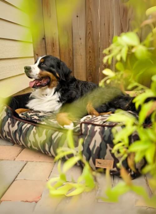 Whether it is in your car or in your living room, the P.L.A.Y. Camouflage Lounge Bed is the perfect place for your pet to feel like it is fitting right in. Elevated sides are the ideal resting place for your pup's head and create the ultimate pooch retreat. Inner cushion and exterior can be flipped, allowing you to enjoy 4 different looks in one bed!