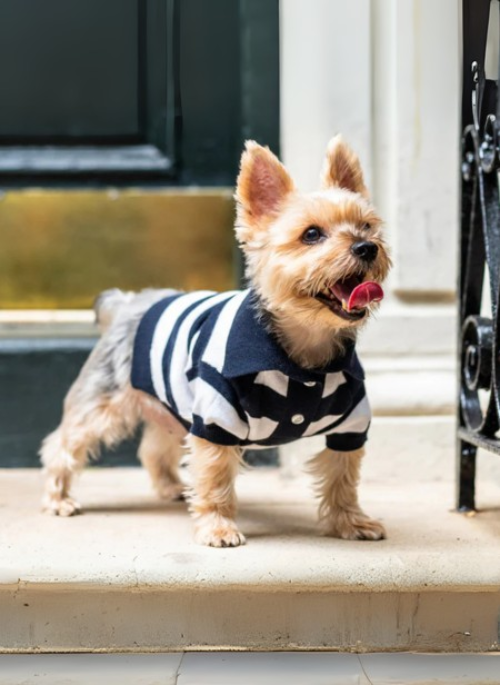 Bespoke Paws ‘Gene’ Cashmere blend polo defines luxury for your beloved pet. Crafted with soft cashmere cotton blend yarn and features a leash hole at the back. Logo buttons at the front give it the extra special touch from our designer collection. Comes in 3 sizes to fit many body forms.