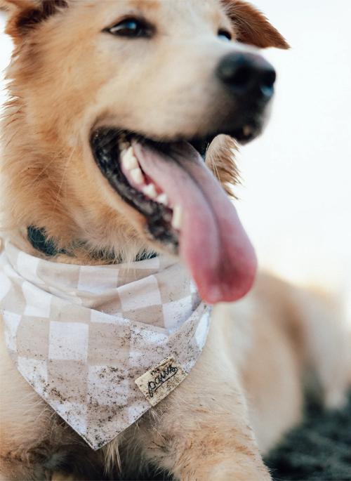 Tailor cut, double-sided dog bandana - sized & ready to tie on.