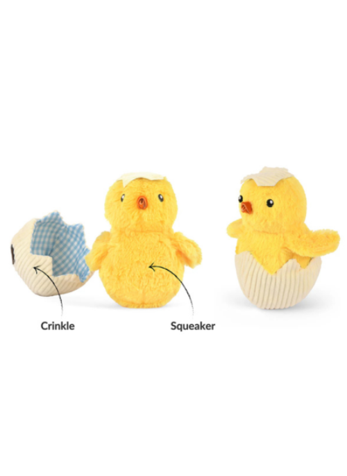 Enhance your pup's playtime with P.L.A.Y.'s Hippity Hoppity Chick Me Out Toy – a fluffy companion with an egg-stra surprise! Nestled within a removable crinkly eggshell, this charming chick adds a sensory twist to playtime. Crafted for durability and amusement, it ensures hours of joy. Your dog will love the engaging crinkly sounds, making it a cluckin' good choice for interactive fun. Uncover the delight of play with this whimsical toy!