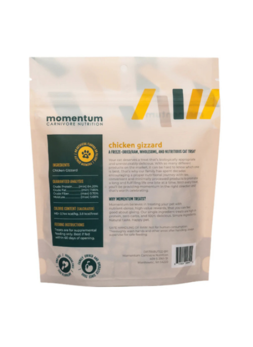 Treat your cat to the delicious and nutritious Momentum Carnivore Nutrition Freeze-Dried Chicken Gizzard Treats. Made from 100% pure chicken gizzards, these treats are packed with high-quality protein and essential nutrients, offering a healthy and flavorful snack that your cat will love.