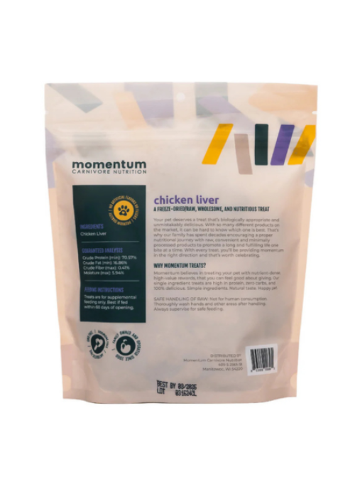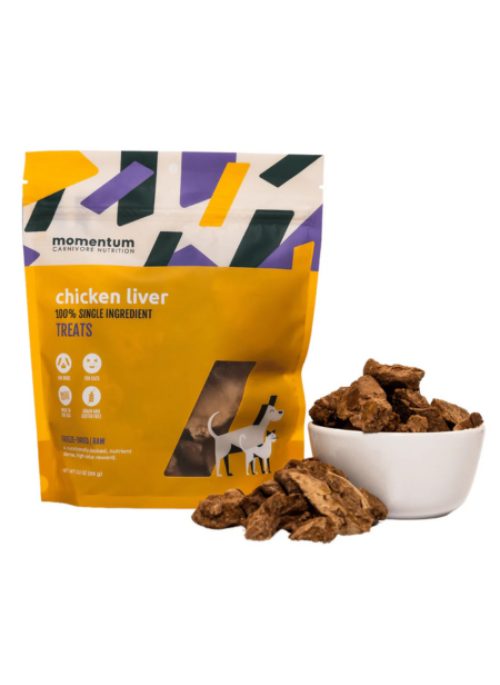 Indulge your pet with the rich, nutrient-packed goodness of Momentum Carnivore Nutrition Freeze-Dried Chicken Liver Treats. Made from 100% pure chicken liver, these treats provide a high-protein, delicious snack that supports your dog or cat's overall health and vitality.