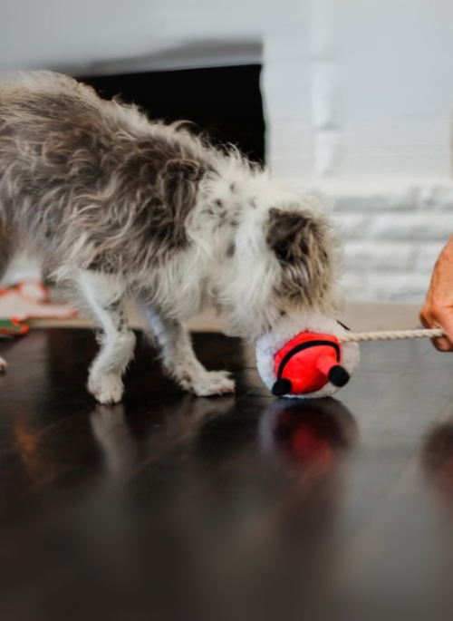 Ho, ho, hold on to your hats! P.L.A.Y.’s Merry Woofmas Clumsy Claus toy is here to bring laughter and joy to the season. This whimsical toy is loaded with engaging features that will have your pup playing and jingling all the way through the holiday season.