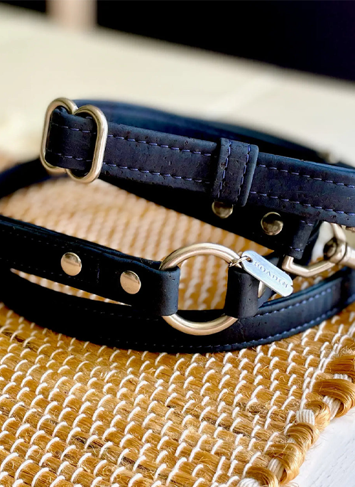 Walk your furry friend in style with this sustainable dog leash in cork made with zero plastic fasteners. Made for all breed sizes, this eco-friendly leash is made with water resistant, sustainable cork and matte nickel (solid brass) hardware. Learn more about why cork is a more conscious choice over vegan leathers usually made with plastic.