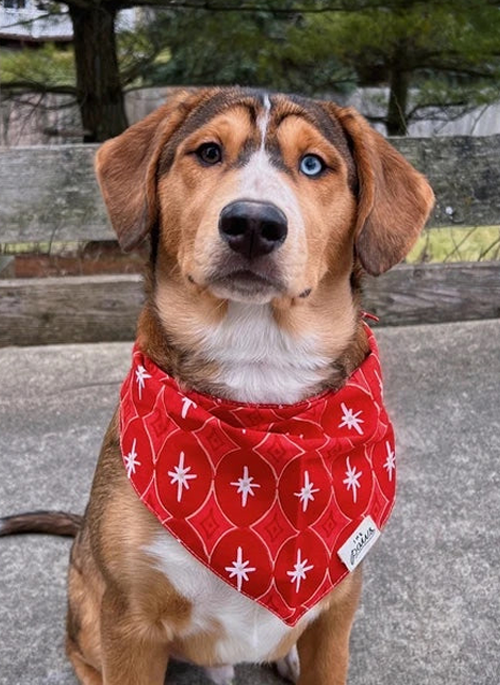 Tailor cut, double-sided dog bandana - sized & ready to tie on.