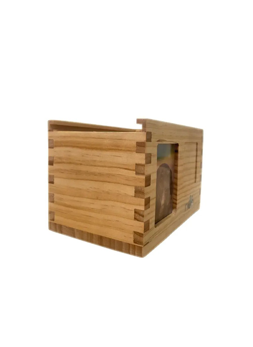 A wooden urn designed to lovingly hold your pet’s ashes. Insert a photo and attach the QR code to access the digital memorial. A safe place to share memories—a symbol of love to keep their presence alive over time.
