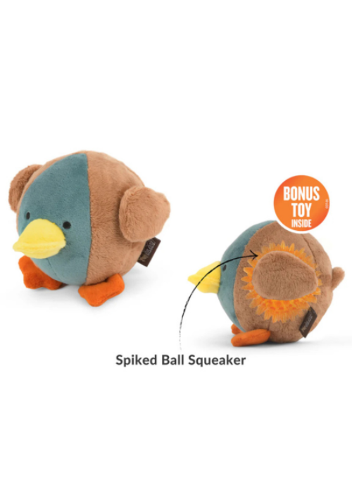Quack up the fun with P.L.A.Y.’s Barnyard Buddies Dana the Duck toy! This feathered friend is super soft on the outside but inside is packed with a hidden surprise - a spiky squeaker ball for double the fun! Whether it’s cuddle time or playtime, Dana is ready to waddle her way into your pup’s heart, even when playtime gets a little ‘ruff’!