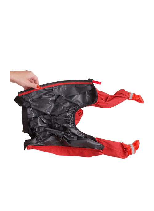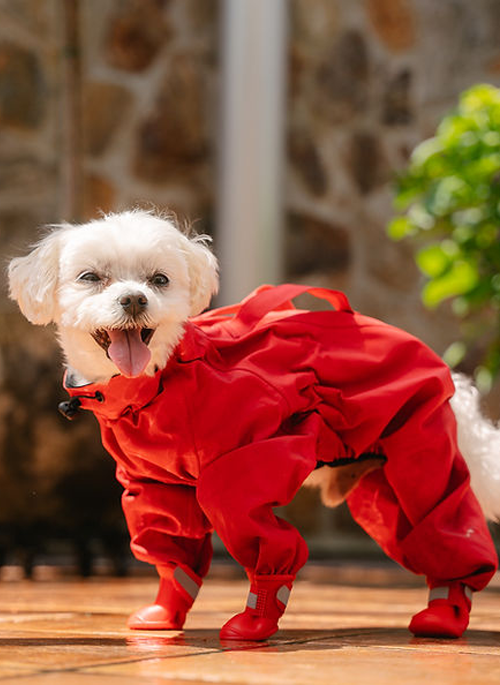 The raincoat with sewn-in rubber boots covers your pet's body including his paws. This ensures that your pet can walk in mud and his paws, legs and torso remain clean and dry. The rubber boots are slip free, so your dog can walk with ease. The raincoat is made with latest waterproof technology, resisting even in the wettest of the rainy and snowy days.