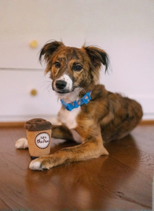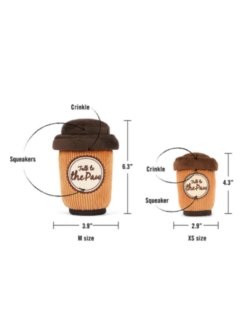 Start your pup's day with a jolt of joy with P.L.A.Y.'s Pup Cup Café Doggo's Java toy – the go-to coffee beverage that brews up excitement. Available in two sizes, this comforting cup features a squeaker in the body and crinkle fabric on the top for texture-rich play. With its own squeaker, the detachable lid adds an extra layer of interactive delight. Treat your furry friend to the ultimate canine coffee break, where every sip is a delightful playtime adventure!