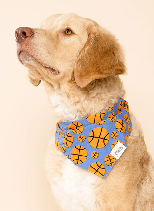 Watch all the action on and off the court with basketballs flying - Dunk Dog Bandana.