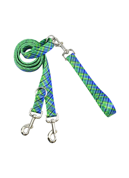 Electric Glow Green Plaid Double Connection Leash - EarthStyle Collection