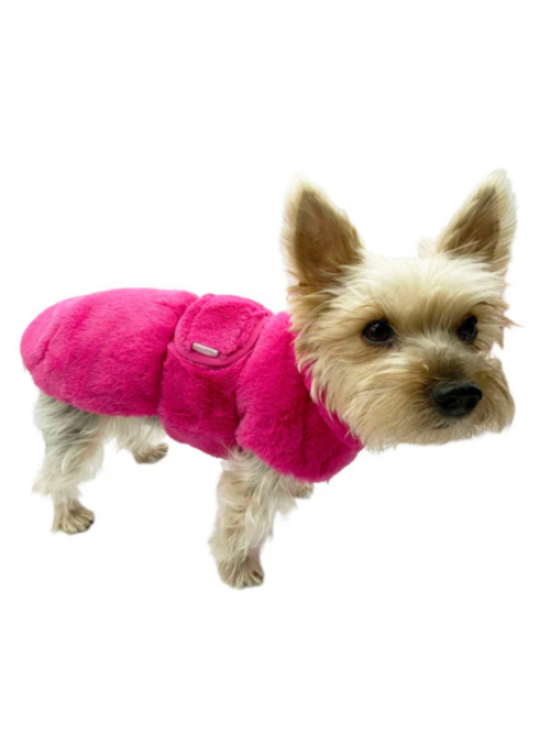 The perfect coat for winter, keeping your pup super warm and stylish in our 'Cody' faux fur reversible puffer in fuchsia.