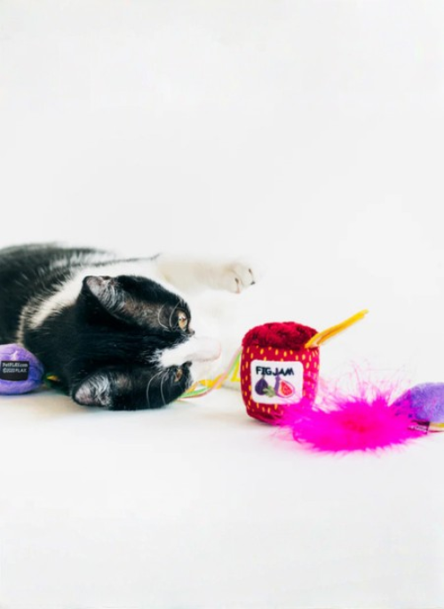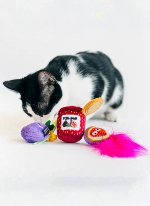 - Fig Jam jar features a refillable pocket pre-filled with certified organic catnip* from Mountain Rose Herbs, grown in Washington, while two other toys have the catnip sewn-in and sprinkled throughout for lasting fun