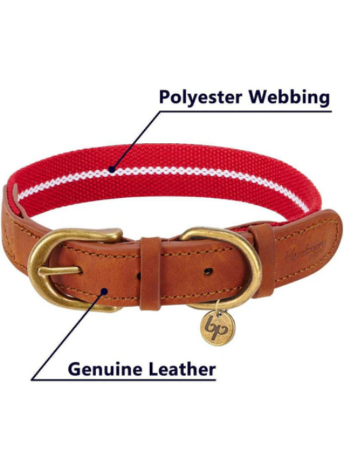 Elevate your dog's style with the Full Grain Leather & Polyester Dog Collar for Stylish Pets. This premium collar combines timeless materials with a bold, contemporary aesthetic, making every walk a fashion statement. Crafted with genuine full grain leather and reinforced with rugged polyester webbing, it delivers superior comfort and lasting durability for everyday wear.