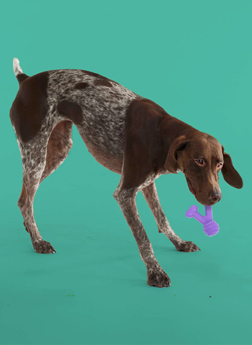 This is no average chew toy. It’s a super-safe, all-natural rubber, doggie dream come true. Featuring a unique texture and a special, paw-friendly shape, it’s designed specifically for the gripping and tugging that keeps dogs happy (and keeps ‘em away from your furniture or shoes!). Available in Teal and Purple.