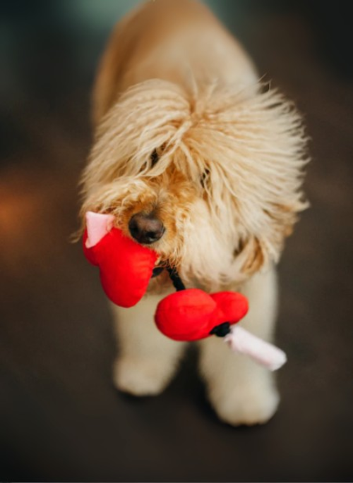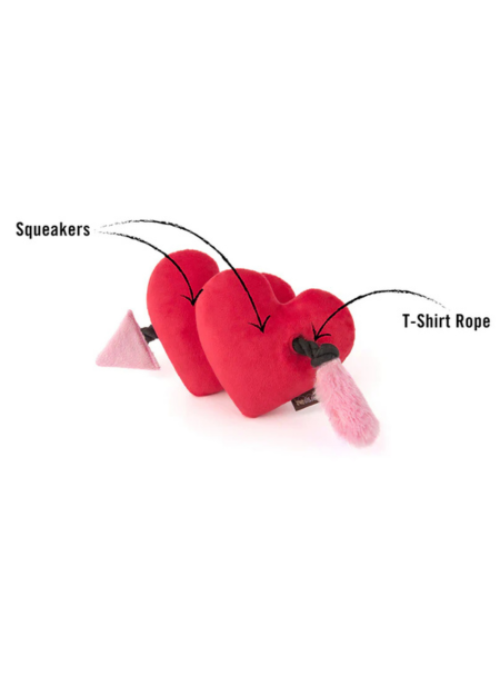 Discover the dog toy that doubles the love and fun for your furry companion with P.L.A.Y.’s Puppy Love Fur-ever Hearts toy! This double-heart design is attached to a durable t-shirt rope toy and boasts not one, but two squeakers, making it an irresistible choice for playful pups. Share the joy with your canine companion as they romp, tug and squeak their way to endless happiness.