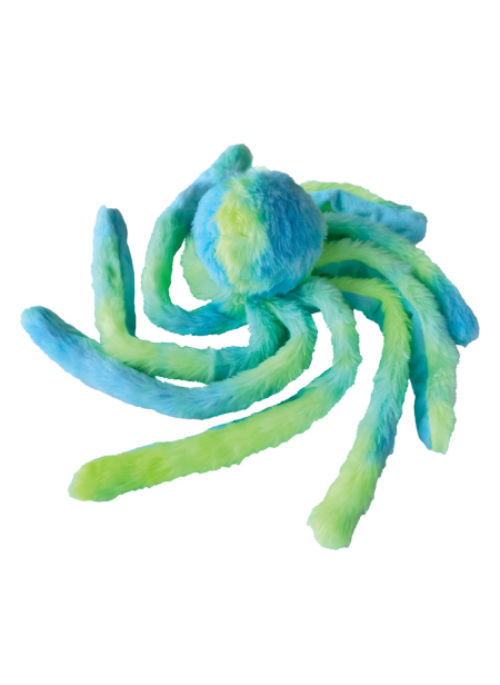 Back by popular demand, we have released a new style for these beloved toys. The tie-dye print is fun and vibrant, while the fabric is luxuriously soft. The legs are perfect for playing tug, tossing and flinging around. This 2-in-1 toy features a hidden spiky TPR ball inside that is equipped with a built-in squeaker for maximum fun. After chewing the outer casing, the hidden toy is revealed! The spiky texture of the ball helps clean teeth and massage gums. Ideal for puppies and small to large breeds.