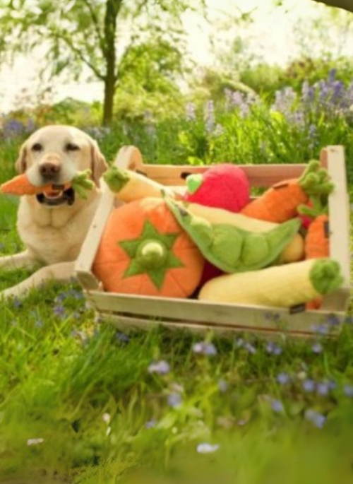 Hop into healthy playtime with P.L.A.Y.'s Garden Fresh Carrot dog toy! Available in two sizes, this squeaky veggie offers all the crunch your pup loves. It's the perfect toy for both small and big dogs who enjoy a good chew and the squeaker inside makes it even more fun! Give your pup a healthy snack without the calories!