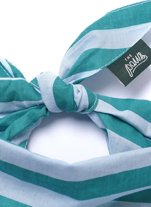 Gili Bandana - horizontal stripes, deep green & light blue.