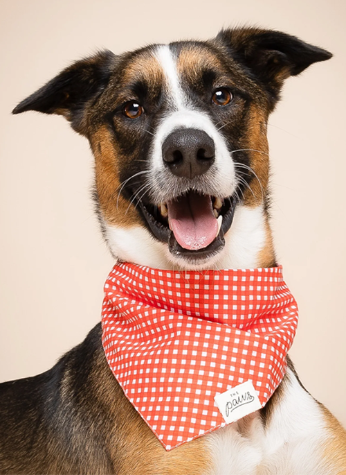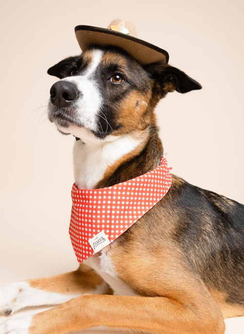 Tailor cut, double-sided dog bandana - sized & ready to tie on.