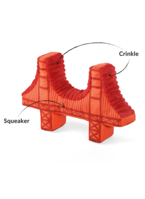 Bridge the gap between fun and playtime with P.L.A.Y.’s Totally Touristy Golden Gate Bridge toy! This iconic toy pays tribute to our home city of San Francisco, featuring durable construction and an engaging squeaker for hours of tail-wagging excitement. Whether you’re strolling through the park or relaxing at home, your pup will love exploring this pawsome piece of California!