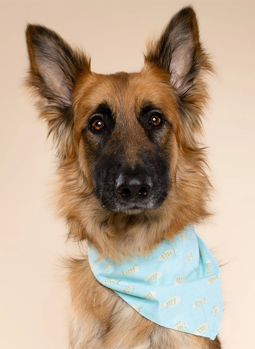 Tailor cut, double-sided dog bandana - sized & ready to tie on.