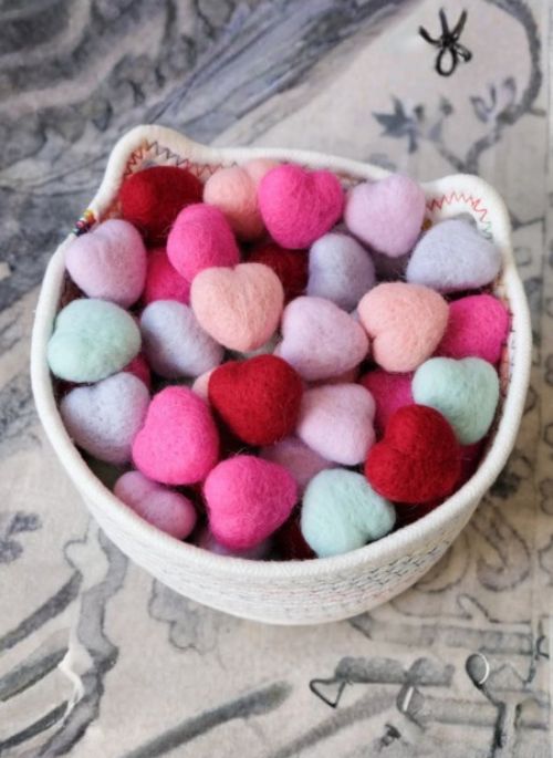 - Each heart is hand-felted with a plush, lightweight texture, ideal for gentle play and easy carrying