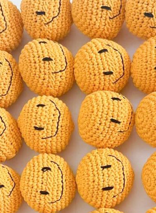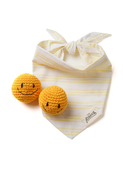 Smiling chew balls are handmade with love. Made with a stretch weave, the weave goes right through the ball.