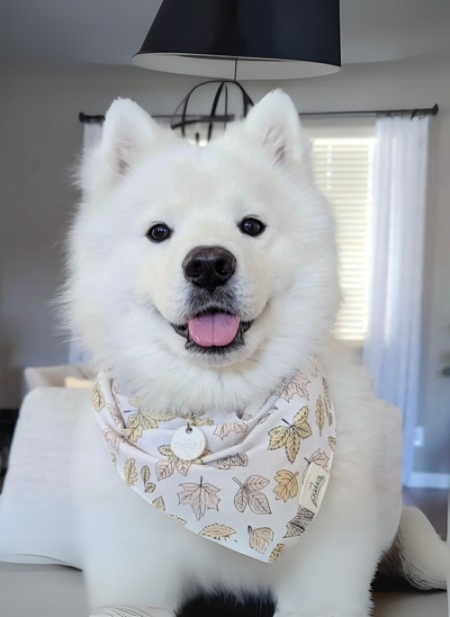 Tailor cut, double-sided dog bandana - sized & ready to tie on.