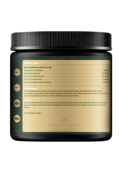 Rooted in timeless British wellness principles, Barrow & Hound's Hip & Joint Bites deliver advanced joint support in a delicious duck-flavored soft chew. Crafted with science and tradition, every chew promotes mobility, flexibility, and playfulness in your dog’s daily life.