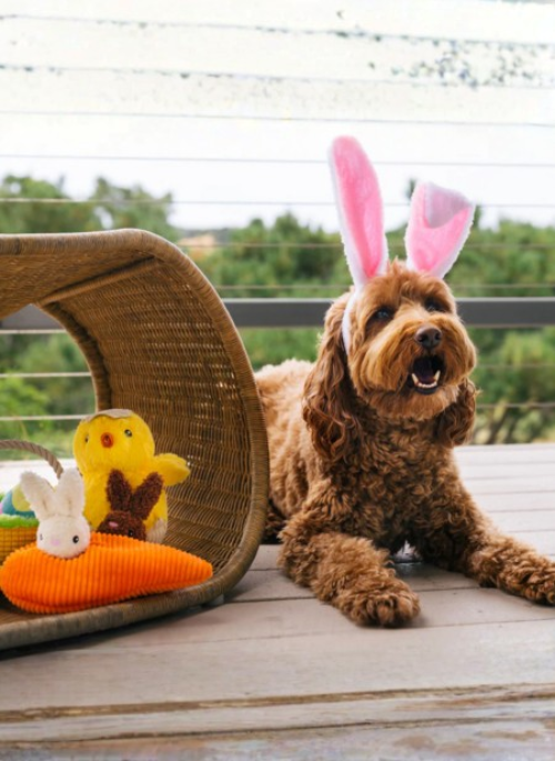 Surprise your pup with this eggs-tremely cute Hippity Hoppity Toy Collection! Every bunny will love trying to capture these two Funny Bunnies from inside the carrot toy, going on an Easter egg hunt to fill their Egg-cellent Basket, plus you’ll crack up watching your dog play with the Chick Me Out toy.