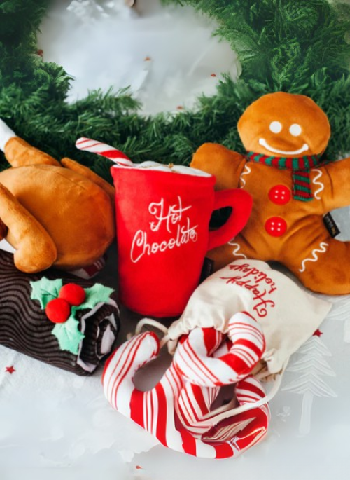 Fill your dog’s stocking with these festive toys, guaranteed to bring holiday cheer to even the grumpiest humbug. This holiday dog toy collection consists of plush, squeaky versions of classic Christmas favorites including a Gingerbread Man, Candy Canes, Hot Chocolate, Yule Log and stuffed Turkey, which will make your Christmas morning extra sweet and memorable. So squeak in the holidays together with your pup and capture the fun with these tasty holiday toys that are perfect for any photo-ops!
