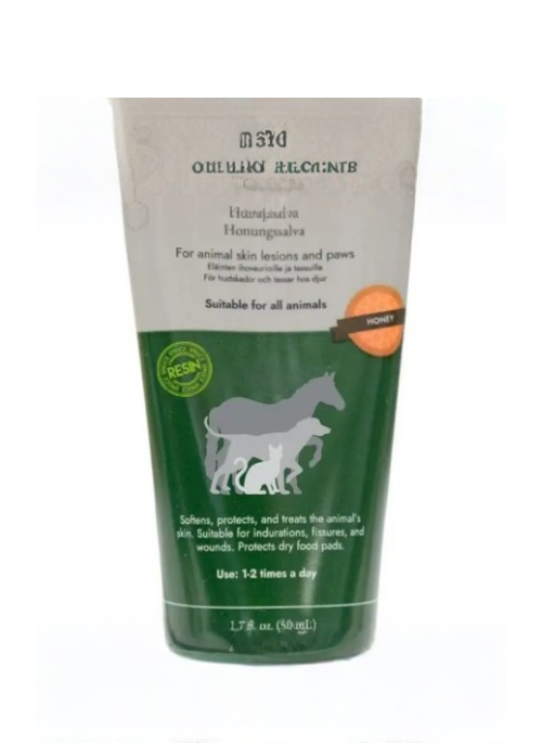 - The honey ointment softens, protects, and treats the animal’s skin. It is suitable for hardenings, cracks, and wounds