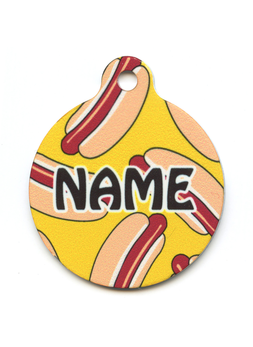 This Hot Dogs dog ID Tag is customizable with your information on the front and back. Match up this tag up with a corresponding collar, lead, harness, Ding Dog Bell, and more. Or simply start out with this tag to keep your dog safe in case they escape or are lostSize: