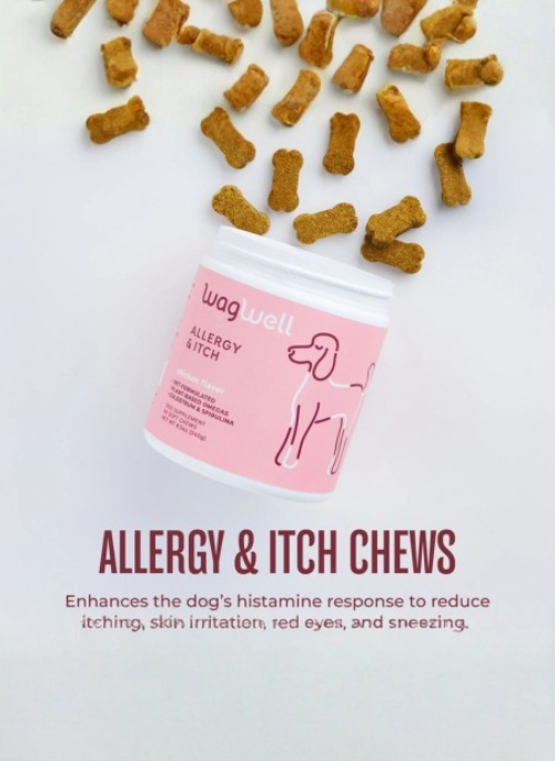 - Allergy and Itch (60 count) : A daily chew to soothe irritated skin, reduce seasonal allergies, and calm itching and scratching