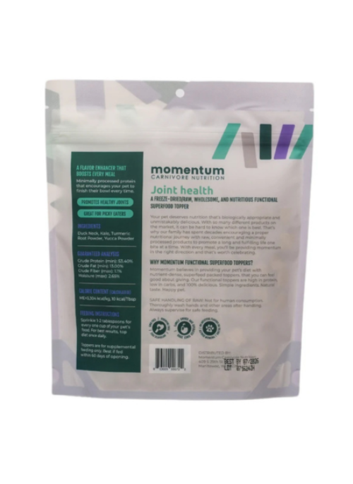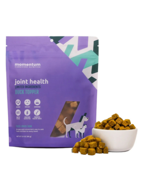 Enhance your pet’s meals with the Momentum Carnivore Nutrition Freeze-Dried Anti-Inflammatory Topper. Crafted with a blend of natural, anti-inflammatory ingredients, this topper is designed to support your dog or cat’s joint health, reduce inflammation, and promote overall well-being.